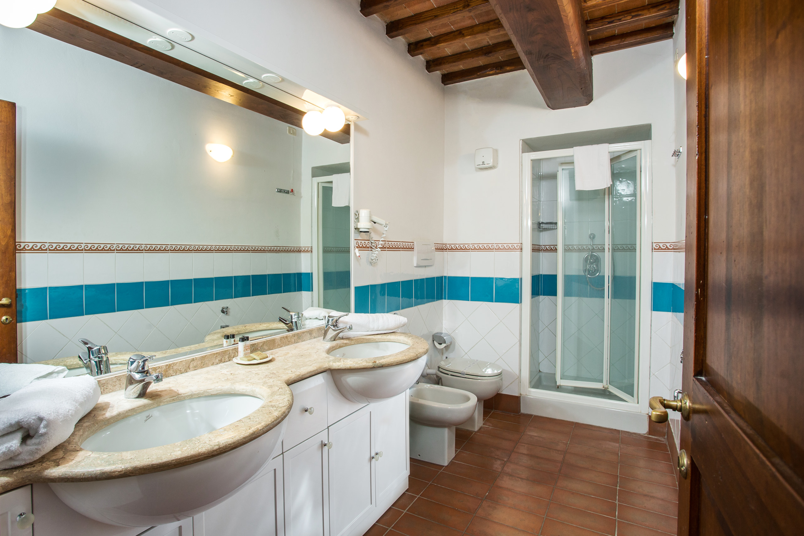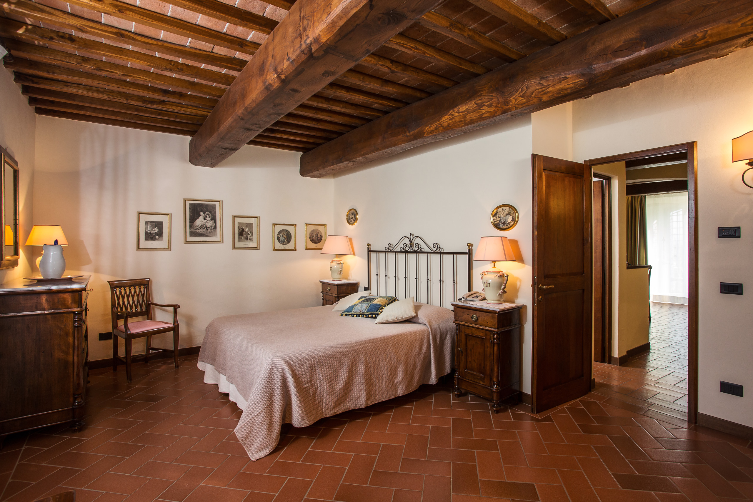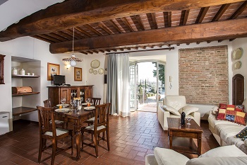 Ildebrando apartment consists of an entrance through a lovely balcony with table and two chairs. A spacious living area with equipped kitchen, table and chairs, double sofa bed and two armchairs. Bathroom with shower and hairdryer. Large bedroom with views of the swimming pool and San Gimignano.
